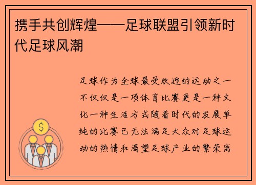 足球联赛未来:科技创新驱动的变革浪潮 随着科技的飞速发展,足球联赛正迎来空前的变革。这不仅仅是场地上的精彩对抗与球员们的驰骋,更是以科技为核心的新纪元。未来的足球联赛,将借助虚拟现实(VR)、增强现实(AR)、大数据、人工智能(AI)等尖端技术,彻底改变观众、裁判、甚至球员的体验与工作方式。 观赛体...